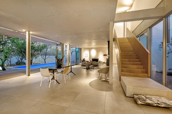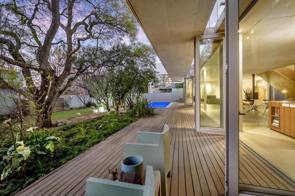 Courtyards, expansive tree-top views, ideal north facing aspects and seamless integration between the indoors and outdoors, set the tone of this urban retreat measuring 513sqm, with welcoming entrance and free-flowing spaces from the kitchen, a family centre that lets the soul of the house shine through, dining and living areas, opening to the elevated pool and terraced treed garden a total entertainers lifestyle. Generous stacking doors open this home to light, air, and structured garden views. There is a private guest wing comprising of spacious bedroom, bespoke bathroom, and private courtyard access. Currently this section is being utilised as a study. Guest cloakroom.