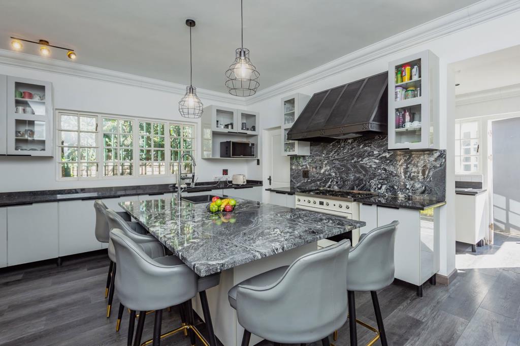 The kitchen is both stylish and functional, with granite countertops, and a central island, walk-in pantry, and separate sculleryoffering ample space for cooking and storage. Adjoining living spaces include a TV lounge, formal living room, and a generous dining area that opens out to the courtyard.