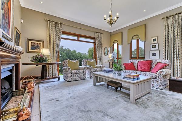 The beautifully proportioned reception rooms flow effortlessly from one to the next, creating an atmosphere ideal for both refined entertaining and relaxed family living. Multiple lounges and a gracious dining room are anchored by gas fireplaces and abundant natural light, all opening onto an expansive patio that frames immaculate gardens and sweeping golf course views.