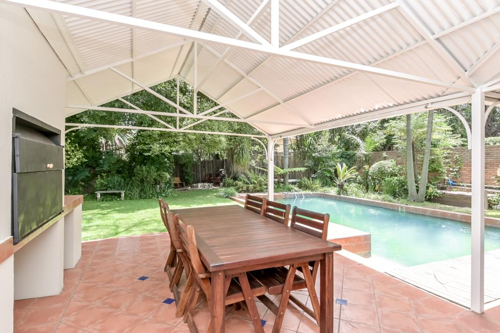 Triple garage with a further 2 undercover parkings and space for 2 more cars. Electric fence, beams and an updated alarm system with cctv High walls, well secured and excellent position in the suburb. Borehole, pipes and purified into the home. Water back up, solar and solar geysers.