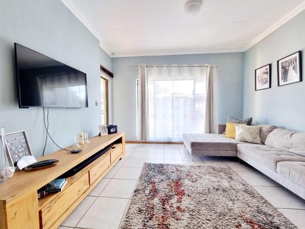 Fully tiled, open-plan living area offers ample living space and a sliding door leading onto a covered patio.
