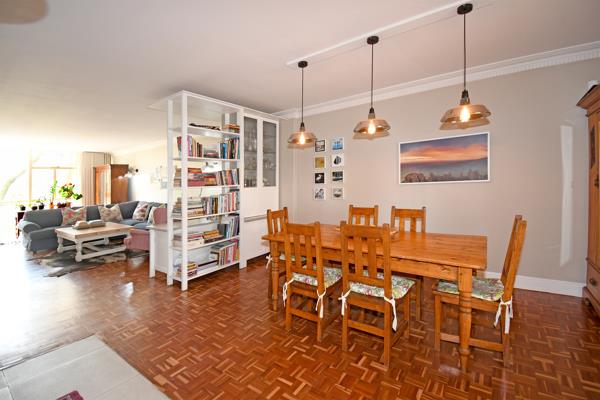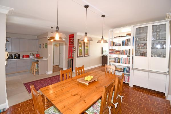 This beautiful apartment measures 176 square metres and faces north. Enter into an open plan living, dining room, fitted with designer purposed shelving and cupboards