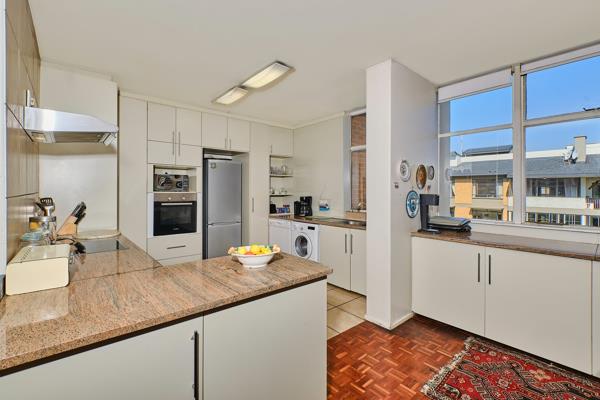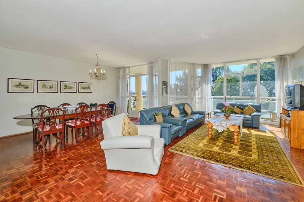 Bright and expansive open-plan living area is perfectly designed for modern family life. Enjoy effortless transitions from the large open plan kitchen to a dedicated study area, dining room, and inviting lounge, all adorned with beautiful parquet flooring. Step out onto the open balcony and unwind amidst serene views of the complex garden and swimming pool, extending to the lush urban forest that defines Johannesburg.