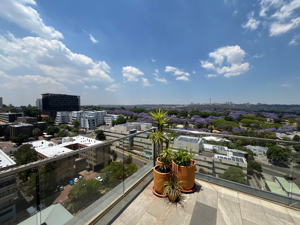 Welcome to the luxurious penthouse apartment in the heart of Rosebank, Sandton! This spacious corner unit offers a convenient and central location for your lifestyle. As you enter, you are greeted by a well-appointed kitchen with built-in appliances and generous cupboard space. The open-plan dining area and TV lounge feature large windows that showcase the beautiful treetop views of Rosebank.