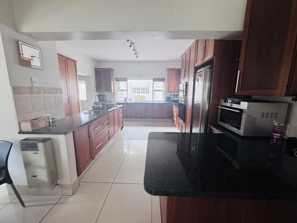 This impressive home features four spacious bedrooms, each complemented by a modern bathroom, offering comfort and privacy for the whole family. The massive kitchen is a true highlight finished with Rustenburg granite countertops, a gas stove, scullery, and pantry, as well as an inverter for power efficiency. The expansive living and dining areas provide an open and inviting atmosphere, perfect for family gatherings and entertaining guests.