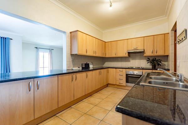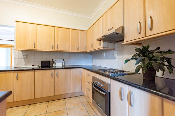 Located in a secure complex in Waverley, the home features open-plan living, a gourmet kitchen with gas hob, and an expansive private balcony with breathtaking views and a built-in gas braai.