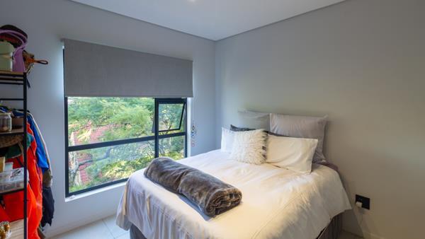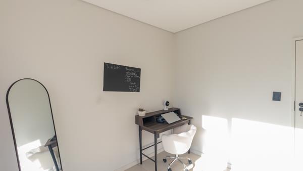 One entrance leads to the main section of the apartment, featuring two spacious bedrooms, a modern bathroom, and a sleek kitchen (plumbed for two appliances and equipped with a load-shedding-ready gas hob). The kitchen flows seamlessly into an inviting dining and lounge area, perfect for entertaining. Step out onto your private balcony to enjoy your morning coffee, surrounded by birdsong and leafy serenity.