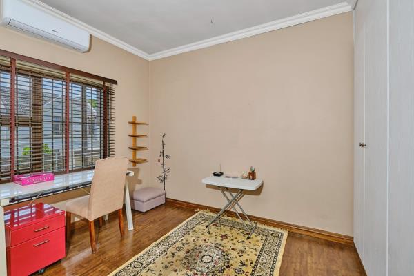 Upstairs features 3 spacious bedrooms, all with built-in cupboards and air-conditioning. The main bedroom has a luxurious en-suite bathroom and private balcony with stunning treetop views. A full 2nd bathroom and guest cloakroom downstairs complete the picture.