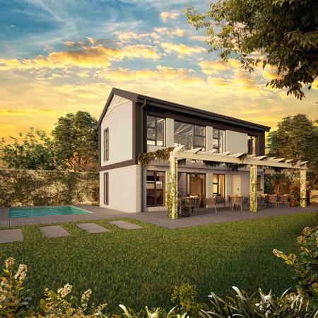 The 4-bedroom homes offer the ultimate in space and relaxed comfort with a beautiful sense of flow. A covered entrance leads into a spacious open dining and lounge area, which opens onto a large covered patio. Alternatively, residents can enter from the garage into a large, generously proportioned, and beautifully planned kitchen, for the ultimate cooking and entertaining experience. Guests or family members can relax with bar-style seating at the counter, or in the dining room which seats six. The spacious, open lounge opens onto a large patio and private walled garden, so you can enjoy days entertaining guests around the braai. Guests can freshen up in the guest bathroom without having to go upstairs, ensuring both your family and friends enjoy the ultimate in relaxed comfort and privacy. Upstairs, your family can enjoy luxurious comfort, with a pyjama lounge and study area. The four large bedrooms offer privacy and plushness. The large main bedroom opens onto a covered patio for relaxed morning coffees and gorgeous views, with a full en-suite bathroom including bath, shower, and side-by-side vanity. Two more bathrooms are easily accessible from the other three, generously proportioned bedrooms each with plenty of built-in cupboards. The second and third bedrooms offer large windows and beautiful views, while the remaining bedroom features a covered patio. With modern, luxurious finishes throughout, quality and style are yours. Plenty of guest parking in the development ensures convenience for visiting guests.