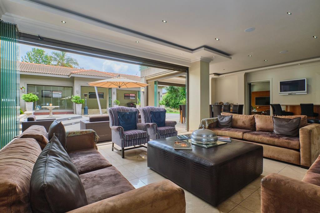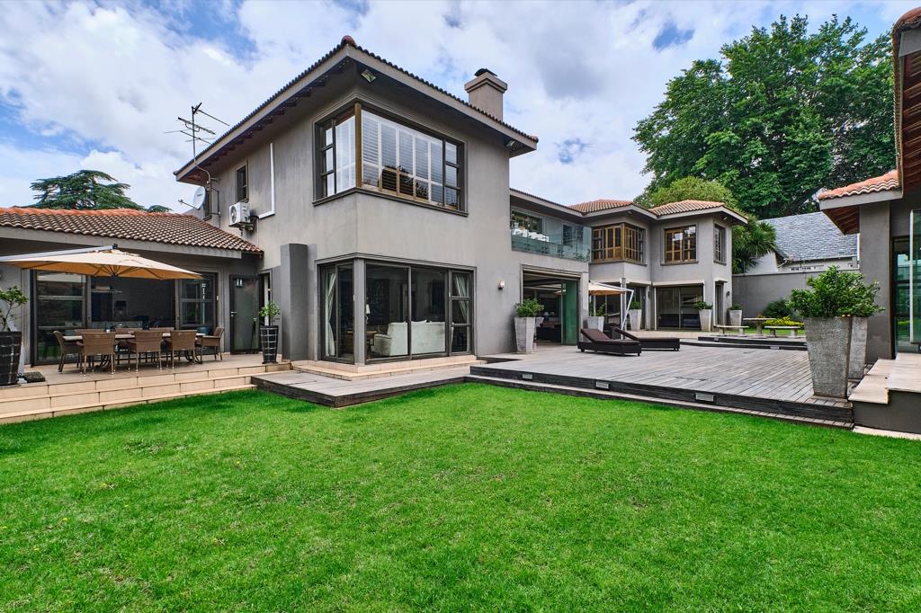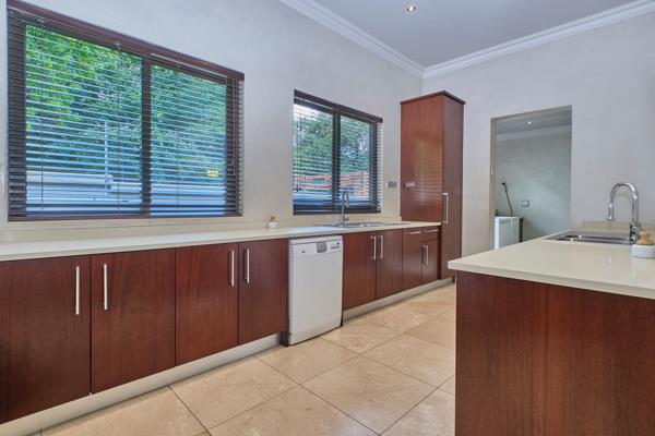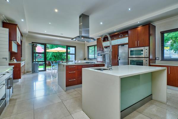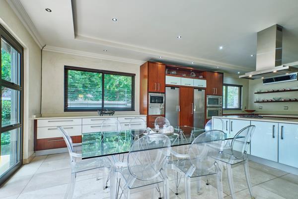 A spectacular architect designed 4 bedroom en suite family home of amazing proportions, built for the owners to exacting standards with the very finest of fixtures, finishes and fittings. The entrance of the home is totally secured & bullet proofed and has TV monitored gate access. Enter through metal front door to massive entrance hall, you will instantly become aware of the quality this home exudes with its dramatic double volume ceilings with chandelier, and low voltage/mood lighting, marble flooring and 2 way grand floating marble staircase to landing. Three generous bedrooms all en suite with dressing rooms and feature marble bathrooms 2 with interleading patio plus very well appointed pyjama lounge and security shutters on all windows which are double- glazed. Downstairs amazing master bedroom en suite with own lounge area which leads out to garden, his and hers fitted dressing room, and wonderful full marble bathroom. Banquet size dining room with fitted sideboard with comfortable seating for 18 people, gourmet chefs kosher kitchen complete with 2 centre islands, caeserstone tops, walk in pantry & cold room, separate scullery, laundry. Includes breakfast room to private terrace plus additional reception room. Inside/outside patio area through seamless fold away glass stacking doors, the reception rooms flow out to entertainers wooden deck and north facing well kept manicured garden. Bonus cottage plus heated indoor pool, gym, sauna and steam room. Double staff accommodation. 3 Automated garages plus off road parking for about 10 cars. Industrial generator with UPS system, aircons, wall heaters, surround sound, fibre ready. Not a cent has been spared in creating this amazing home. If you want a home that has it all then this is for you.