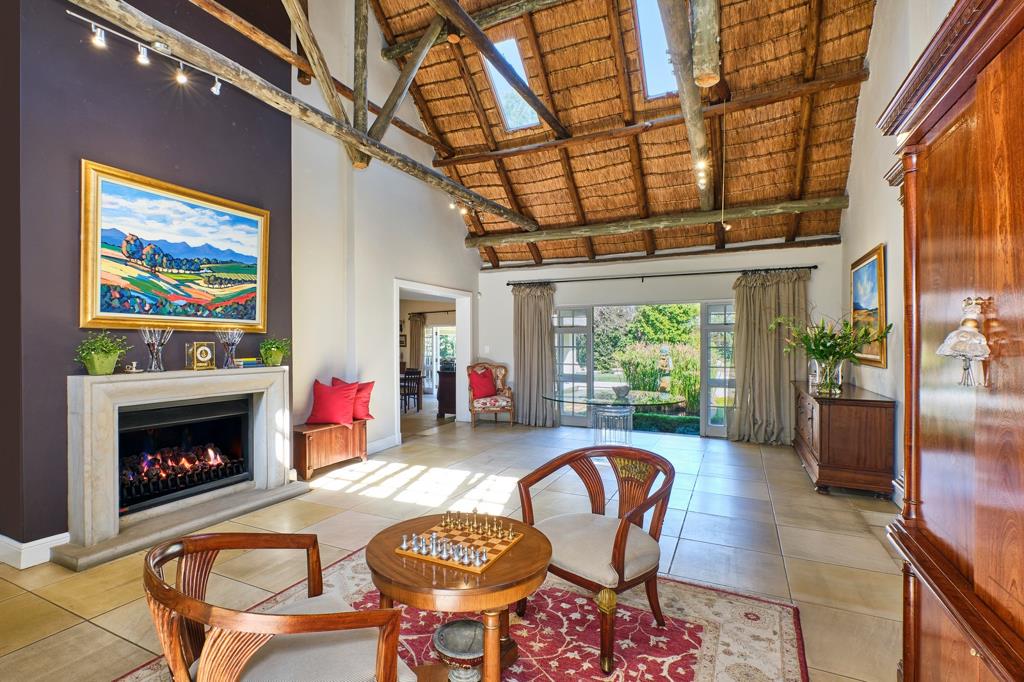 Let everyday be a summer holiday in this out of Africa experience - the magic of thatch nestled on an acre of well established garden. Rezone and subdivide into 6 units, services have not been put in or promulgated (this to be negotiated). Second option:- subdivide into 2, keep main house as is with pool and build additional dwelling. Enter through large tree lined panhandle driveway with monitored gate control access. Captivating courtyard with beautiful cascading water feature and lush mature garden. Lounge area/TV room off dining room with fireplace. Tiled floors throughout downstairs living area. Gourmet French country provincial style eat-in kitchen with Smeg oven, stove and extractor plus 2 eye level Siemens ovens. Granite tops and large wooden centre Island with porcelain prep bowl, separate scullery, laundry and pantry. Formal dining room opening onto entertainers patio with built-in braai and cascading pool in landscaped garden with tall trees and rolling lawns. Gas fireplace and beamed ceiling with thatch roofing throughout. 4 Generous bedrooms, 5 bathrooms plus guest cloakroom (mes with his and hers bathrooms plus substantial dressing room). Wooden sash cottage pane windows and security shutters in main bedroom and passageway. Large loft area and family games room with separate cloakroom, could easily be used as self-contained cottage. Special features include gym and wine cellar. 2 Staff accommodations, storeroom, 4 automated garages plus parking court. The possibilities are endless - definitely worth viewing by appointment.