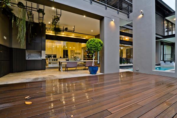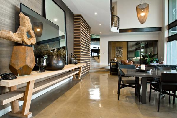 Flowing from the impressive entrance hall, a casual elegance is immediately on display. Engrained in its DNA is the fluidity for indoor - outdoor entertainment with expansive open plan living areas that allow for extraordinary entertaining . The magnificent great room concept, cleverly combines dining room, lounge, family room and kitchen. The sense of space is further enhanced by stacking glass doors opening onto the elevated patio with expansive views over the treed surrounds. At the heart of the reception areas, sits the sleek well appointed kitchen - the heartbeat of the home, perfectly placed to create family moments. Lounge outside on the patio or at the intimate boma surrounded by beautiful trees.