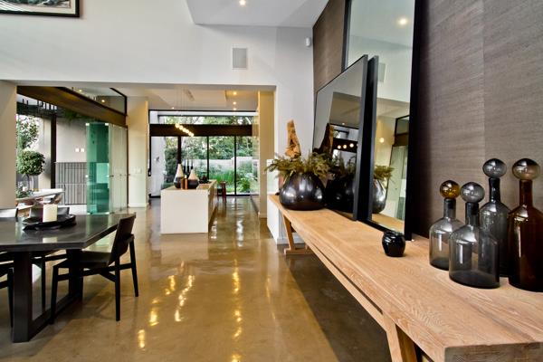 Discover beautifully detailed interiors as you stroll from room to room - high ceilings and vast windows enhances the feeling of light and airiness. The second level offers 5 deluxe bedroom suites, and pj lounge. The master bedroom features a palatial dressing room seldom found in private homes. Guest suite privately situated downstairs. Points to ponder : guarded road, high walls, electric fence, beams, roller shutter for upper level, 2 gas stoves, cold room, screeded flooring , solid wood flooring on second level, fitted units in 2 lounges & study separate entrance, surround sound, built in braai & pizza oven, laundry shoot, integrated fridgefreezer, pantry, 4 garages with control room, generator and solar, back up water, JoJo tank and prepaid electricity. Craftsmanship plus meticulous attention to detail is evident in all aspect of this Modern Classic. Optional road levy of R1600.