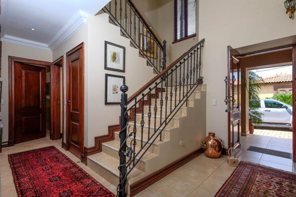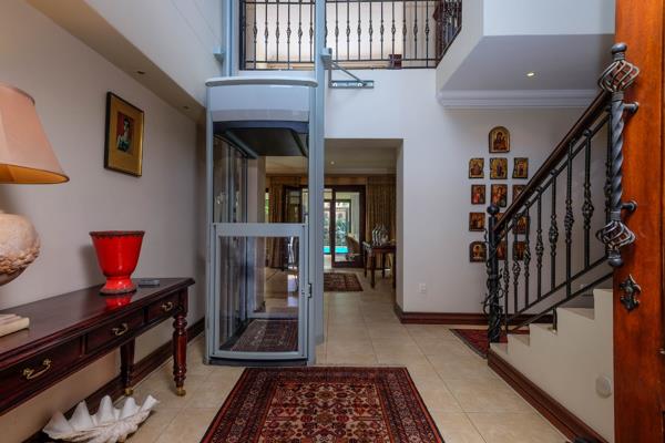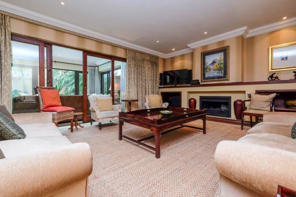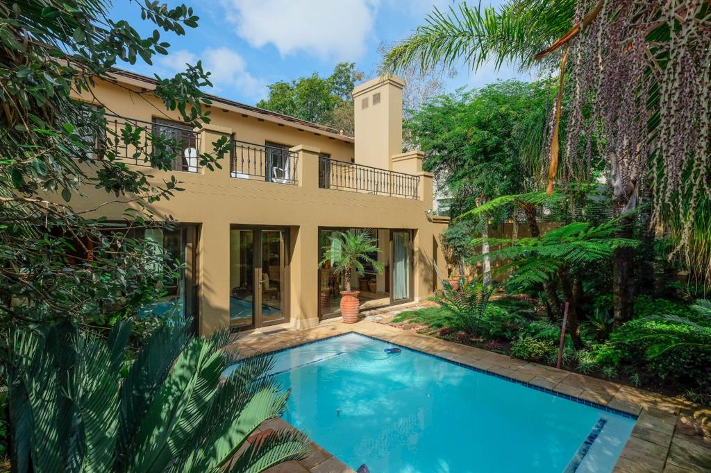 As you enter this beautiful home, you are greeted by a gracious double door entrance with double volume ceilings, that spills onto a spacious open plan living area with a formal lounge with a built-in gas fireplace plus a 10-seater dining room with built-in solid wood cabinet. Leading on from there, is a spacious enclosed entertainment patio area that overlooks the pool and the established lush garden with palm trees, cycads and other beautiful plants. The enclosed patio area has a built-in braai, skylights that assure abundant natural light, plus aluminium stacking doors that can be fully opened for those wonderful summer days when one is hosting friends and family. The finely appointed gourmet kitchen has Caesar stone countertops, a large center island, top-of-the-line Siemens and Bosch appliances, side by side fridge and freezer, built-in microwave, combination glass top stove with 2 gas plates, solid wood cupboards, a breakfast eating area that leads out onto the garden, plus a scullery and a glass sliding door to separate the kitchen when entertaining. On the other end of the downstairs area, is spacious office that can be converted into a 3rd bedroom and adjacent to it, is the guest bathroom with own shower. Leading upstairs, you can take the lift or the stairs to an open plan pajama lounge area with balcony access shared with the 2 very spacious north facing bedrooms with plush carpeting, lots of cupboard space plus a walk-in closet for the master bedroom. The 2 ensuite bathrooms have double vanities, showers and baths and an outside shower for the master en suite bathroom. Extras in this amazing home include the large, shared balcony that runs from the master bedroom, past the pajama lounge and onto the guest bedroom that overlooks the private garden below. Theres full backup power that includes solar panels and a generator, underfloor heating throughout, a central aircon system, staff accommodation, an outside sauna, a double garage with direct access into the scullery, under stair storage, fitted blinds, extra visitors parking. All this in a secure and tranquil 24 hour security complex with just 3 other properties. This is a special home and you''ll fall in love at first sight. Less than 5 minutes to Melrose Arch, less than 10 minutes to Hyde Park and quick and easy access onto the highway. VIEWING BY APPOINTMENT - PLEASE CONFIRM WITH AGENT.
