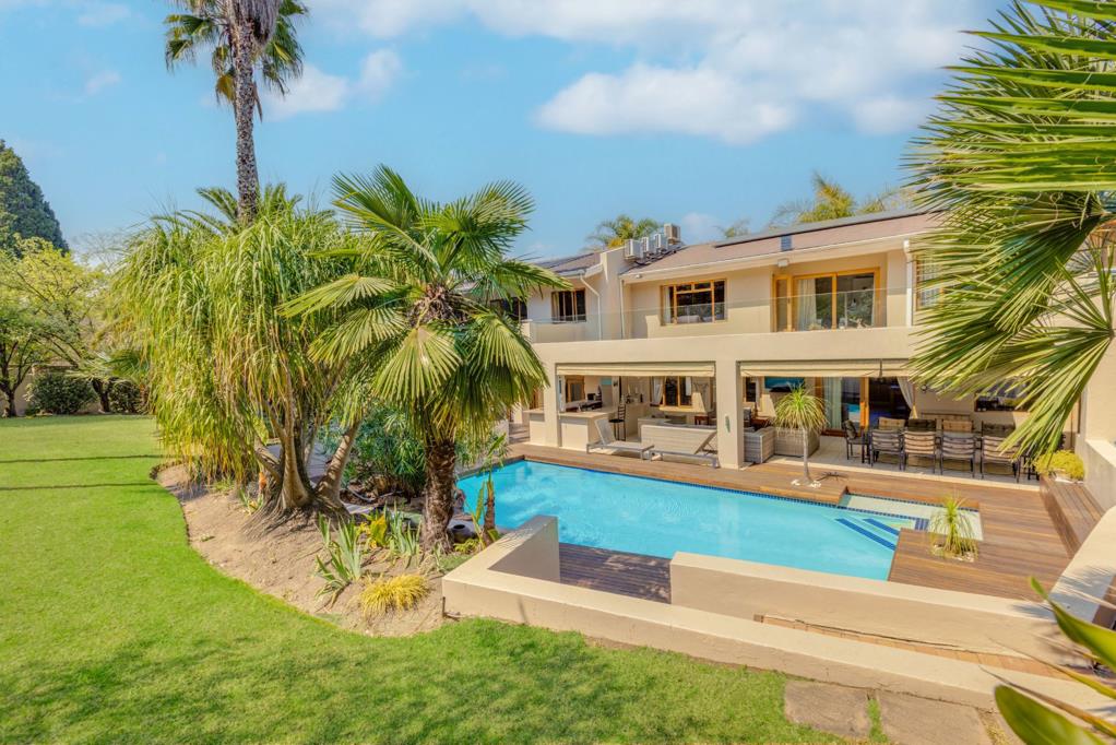 North-Facing Family Home in Quiet Avenue. Discover the perfect blend of space, comfort, and entertainment in this exceptional north-facing family home, tucked away in a quiet and secure avenue. Designed for those who value peace and privacy, this home offers generous flowing receptions and seamless harmony between indoor living and the inviting outdoor entertainment spaces. From the inviting entrance hall, the reception areas unfold effortlessly, including a formal dining area, TV area, family lounge with fireplace, and a spacious family room which could double up as a gym or kids playroom. These areas extend through to a covered patio with bar counter area and built-in braai, overlooking a decked heated pool with water feature, and a separate Jacuzzi room.