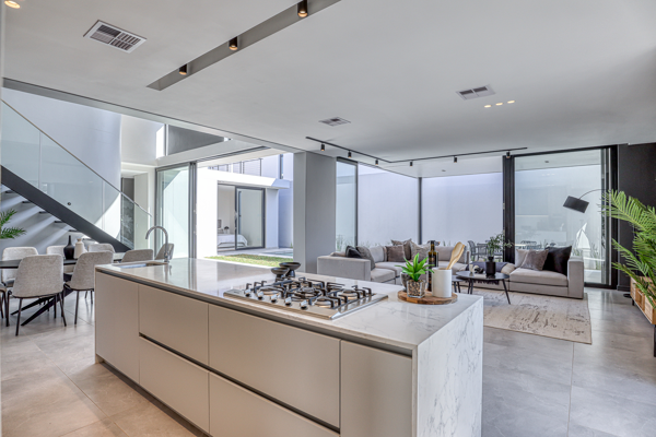 A selection of six plot-and-plan opportunities and one completed show home is now available, allowing buyers to either choose their ideal stand and home type or experience the finished architectural vision firsthand. Each north-facing, double-storey residence ranges from 333m2 to 447m2 and has been thoughtfully designed to maximise natural light, spatial flow, and privacy. Modern volumetric forms, high ceilings, and internal atriums create an uplifting sense of openness, while refined material palettes and premium specifications elevate every room.