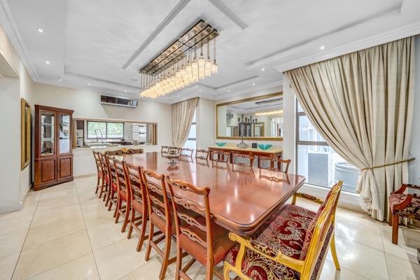 A banquet sized dining room comfortably seats 18 guests, complete with a fitted sideboard, reinforcing the homes ability to entertain at scale.