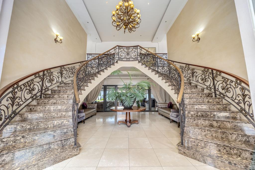A fully secured, bullet-proofed entrance with TV-monitored gate access leads through a solid metal front door into a breathtaking double volume reception hall. Here, soaring ceilings, a dramatic chandelier, mood lighting and marble floors set the tone, while a grand two way floating marble staircase rises elegantly to the upper level.