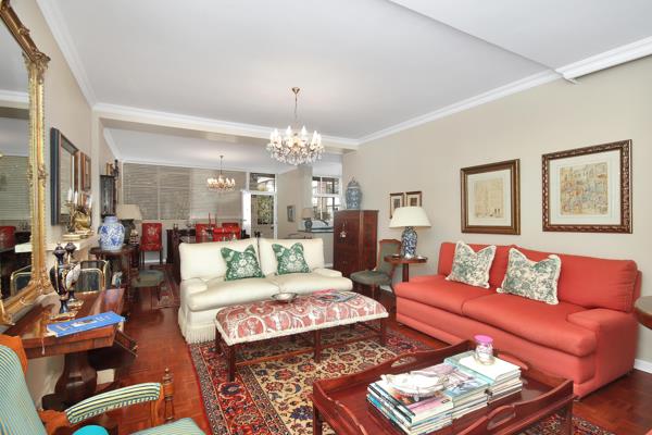 This gorgeous apartment offers quiet privacy and plenty of space with breathtaking views of the golf course and its lush rolling lawns. The absolute attention to detail and pride in the property taken by the owner is evident as one enters its door leading into an ambience of elegance and attention to detail . Spacious open plan lounge/dining area/kitchen. Stunning parquet flooring and chandeliers greet your eye. Two bedrooms, two bathrooms (main en suite) with the second bedroom having an enclosed study area. Lots of cupboards in both bedrooms with an additional dressing room in the main bedroom.