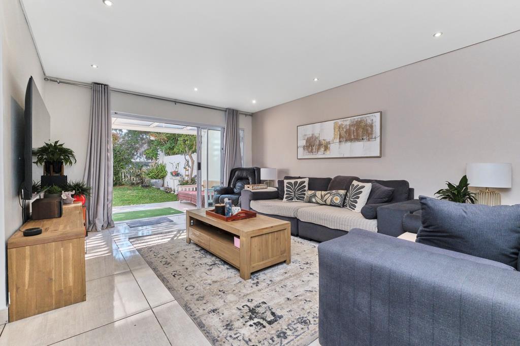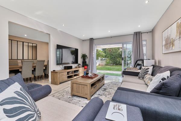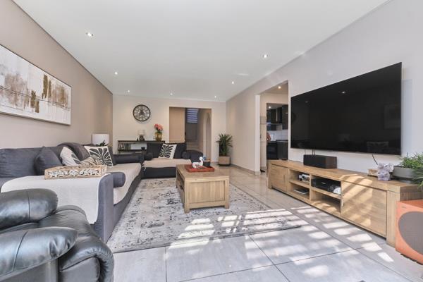 Step through the entrance hall, where a guest cloakroom sets a tone of hospitality and ease. The generous open-plan lounge is bright and airy, enhanced by high ceilings and large sliding doors that lead out to a covered patio complete with a built-in braai ideal for weekend gatherings. The patio overlooks a neat, low-maintenance garden, perfect for children and pets to enjoy.