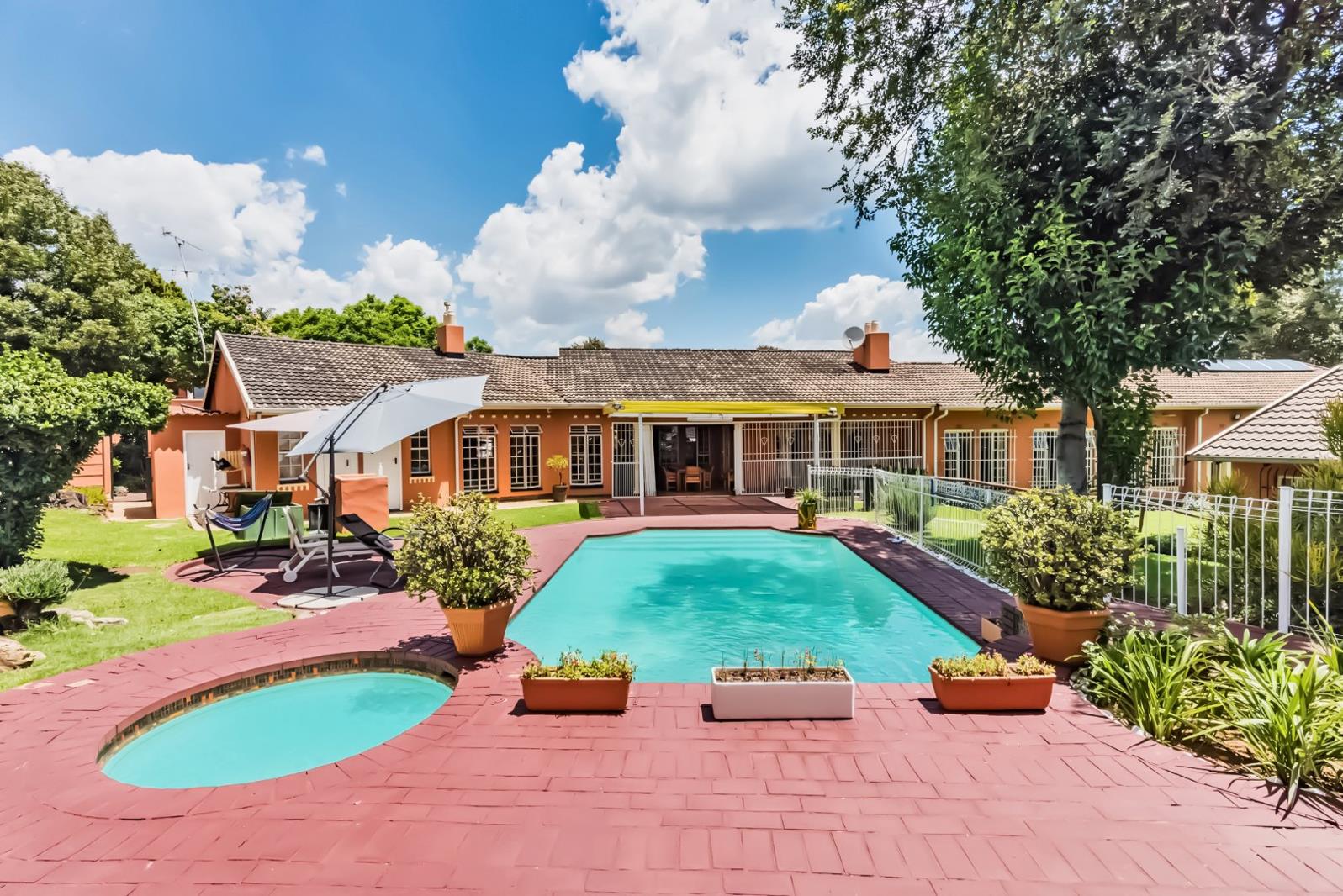 Private accommodation includes 4 well-proportioned bedrooms and 3 bathrooms (mes with walk-in dressing room). Off the main bedroom is a dedicated jacuzzi room with sliders out to the garden, offering potential for a 2nd cottage with not too much work required. The lifestyle extends outdoors with 2 covered entertainment patios overlooking a sparkling pool and lush landscaped garden. A thatched lapa with built-in braai enhances the leisure experience, while a sauna and Jacuzzi promise year-round indulgence.