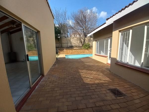 The three bedrooms, including the main en-suite, are roomy and feature ample cupboards and powerful air conditioning for year-round comfort. Outside, you''ll find a large garden, a good-sized pool, and plenty of space to entertain family and friends. With strong security, ample garage space, and extra parking, this home has it all. Bryanston West offers an unbeatable location near major routes, excellent schools, and top-tier shopping centers.