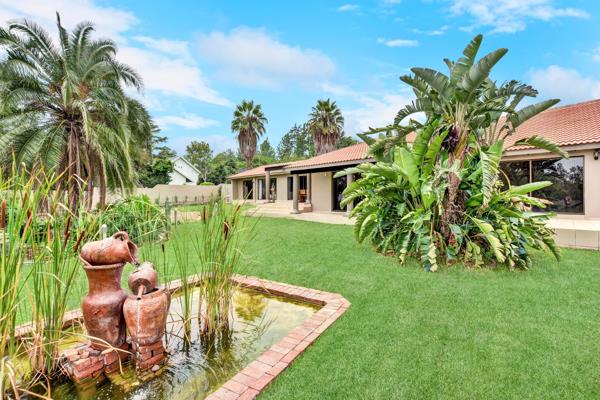 Rooms open onto an expansive, lush garden, entertainer''s gazebo, fish pond and feature pool. Reception rooms include a formal lounge with a wood fireplace, a dining room boasting high ceilings and TVFamily room. The bar room has granite tops, ample cupboards and a fireplace which is shared with the lounge.