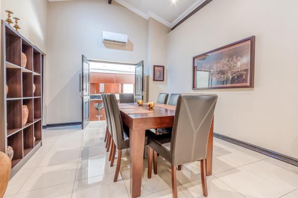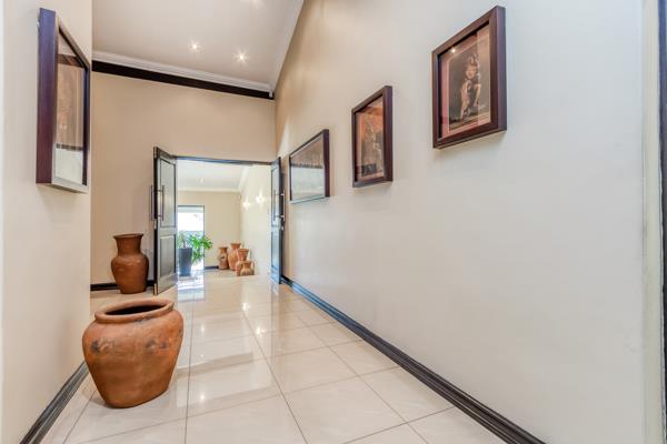 The kitchen boasts stone flooring granite tops pantry cupboard and a breakfast counter. Large, separate laundry cupboard next to the kitchen, which can house 4 appliances. Main bedroom en-suite with dressing area and bathroom, three further well sized, light filled bedrooms the fourth bedroom could be used as a study. 2 Full bathrooms. 3-Phase, prepaid electricity. Borehole.
