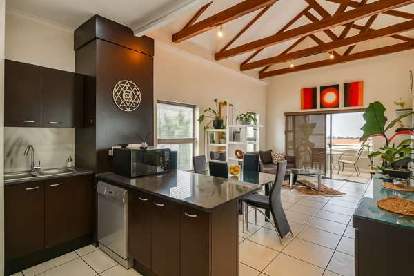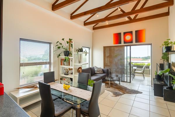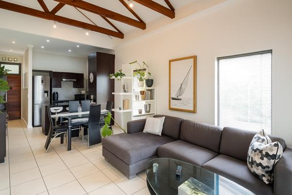 The apartment features two spacious bedrooms, each with excellent built-in storage. The main suite offers a full en-suite bathroom (with both shower and bath) and direct access to a private, covered patio a perfect morning coffee spot with views that stretch out toward the Magaliesburg mountains. A second well-appointed bathroom serves the rest of the home.