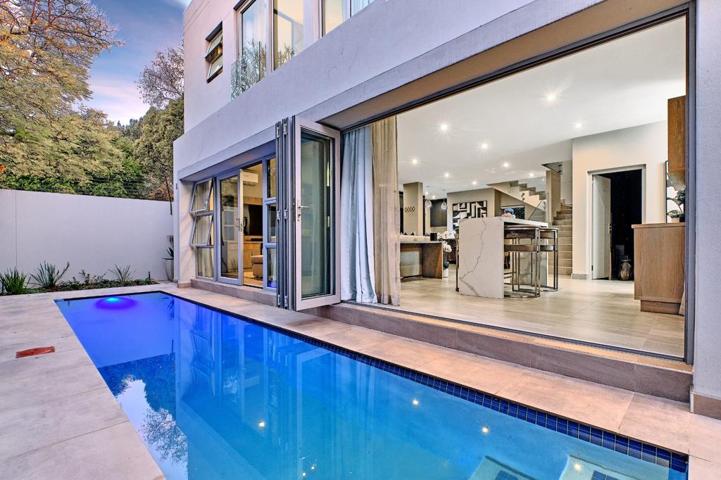 Priced at R6,195,000 (including furniture), this fully-automated contemporary residence in the heart of Bryanston is a masterpiece of convenience and luxury.