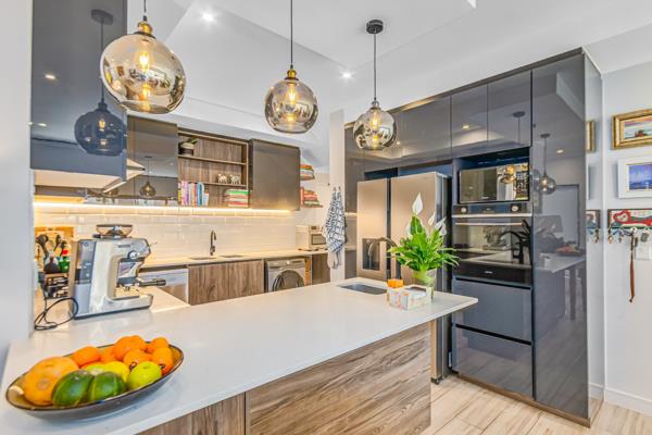 The dining area connects seamlessly to a designer kitchen thats sure to impress. Boasting ample cabinetry, modern splashback tiles, a gas stove with extractor fan, eye-level oven, double basin plus rinse sink, and space for a double-door fridge with plumbing option and three under-counter appliances this kitchen truly ticks every box.