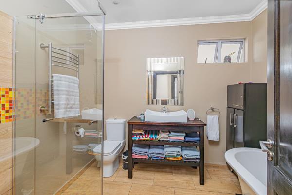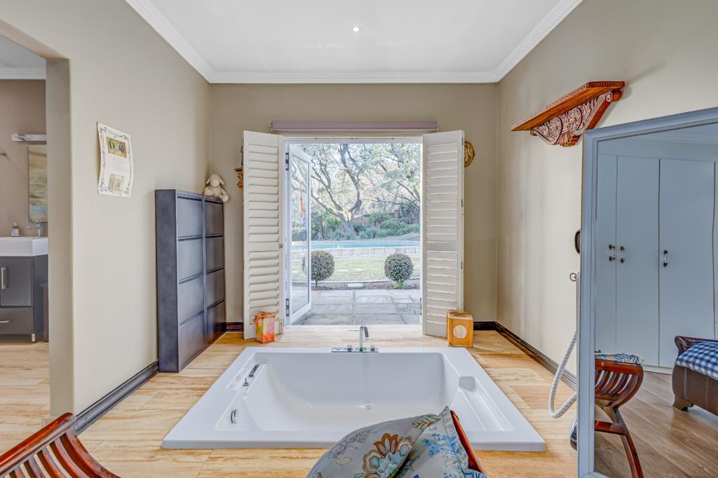 From the moment you step through the grand double doors, the scale of the home is evident. A vast central reception area anchors the layout, with seamless flow into the formal lounge, dining room, and full guest bathroom. The heart of the home is a spacious kitchen with a generous scullery, all opening via stacking doors to a large covered patio, ideal for year-round entertaining. From here, take in the view of the sparkling pool. The garden surrounding it is beautifully manicured and even features a tennis court for spirited matches and carefree afternoons.