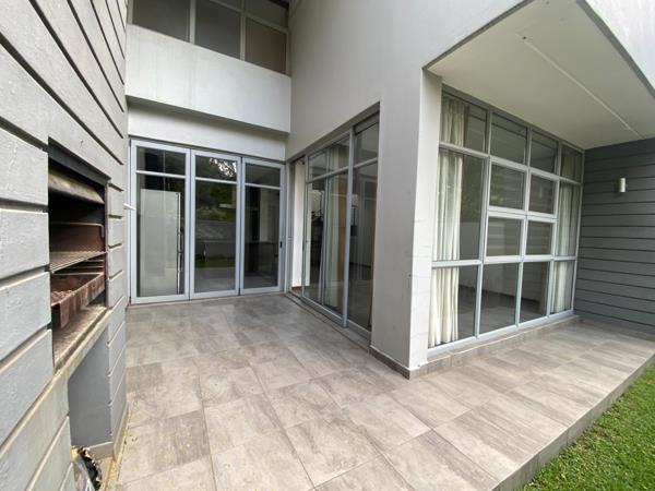 The open plan layout of the kitchen, living rooms, covered patio and gorgeous garden makes for easy living. Upstairs are 2 spacious rooms, both en suite, with the main bedroom with a walk-in closet. Both rooms have sizeable balconies with lovely views. The house comes with a built-in braai.