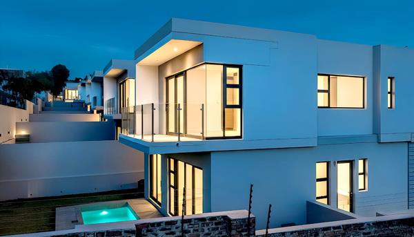 Luxury awaits with aluminum windows and doors featuring low energy-efficient glass, solar geysers, frameless showers, and top-notch sanitaryware from Hans Grohe, Geberit, and Duravit. The gorgeous free-standing baths and Optima Duco kitchen equipped with Smeg oven, hob, and extractor enhance the charm of this beautiful property.