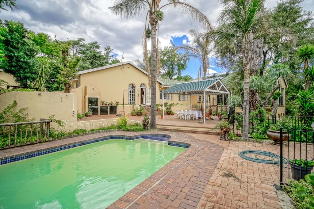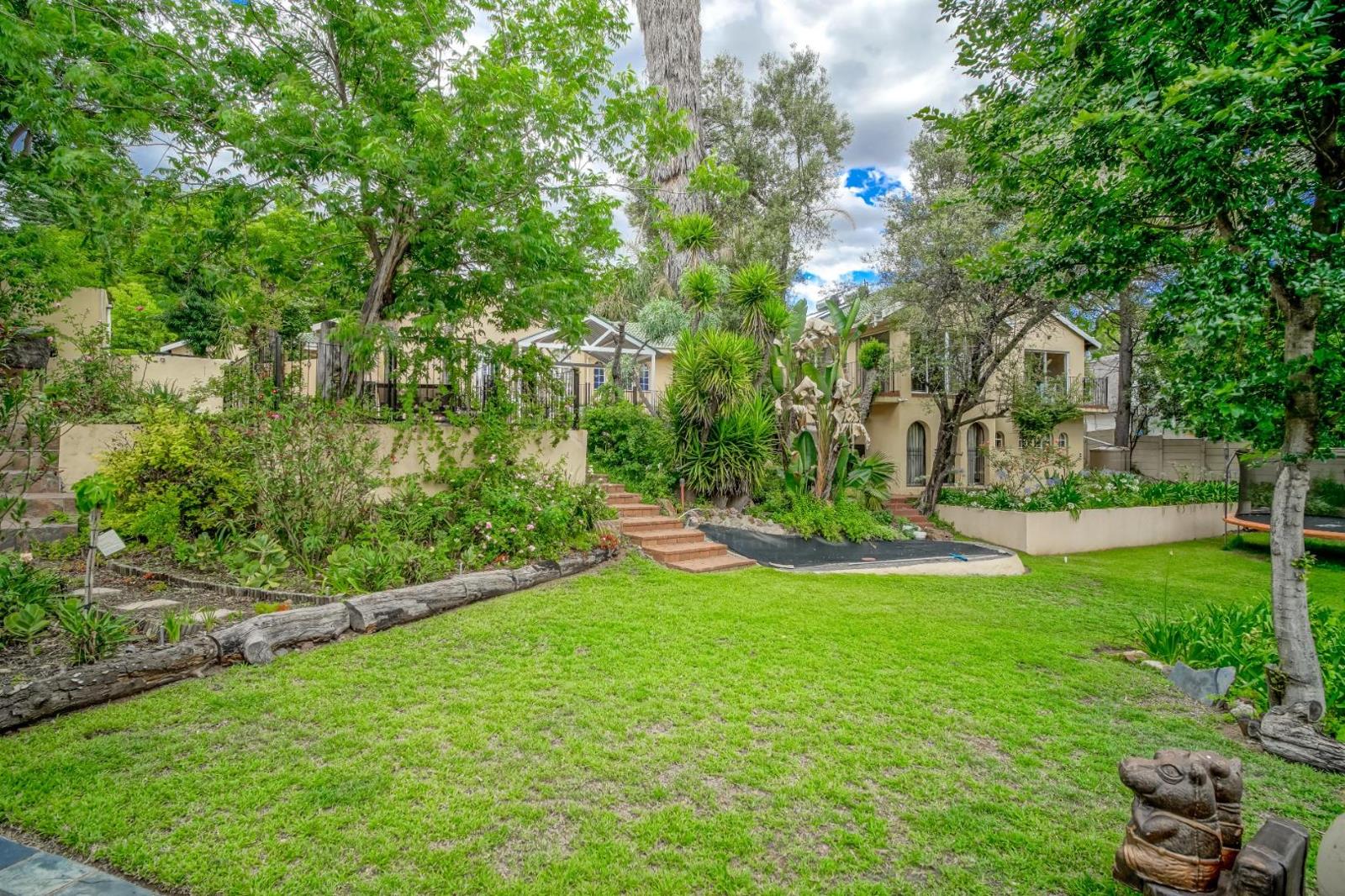 The beautifully landscaped garden includes a sparkling pool, a waterfall flowing into a serene pond, and a private gate leading to a tranquil bird sanctuary.