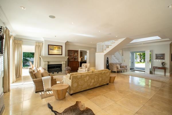 The main entrance has a large double volume lounge with a fireplace and a stately staircase leading upstairs to the four bedrooms. Off the entrance lounge are two separate lounges, a casual pool lounge and a TV lounge, which lead out onto the covered patio and pool area.