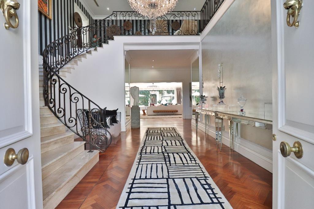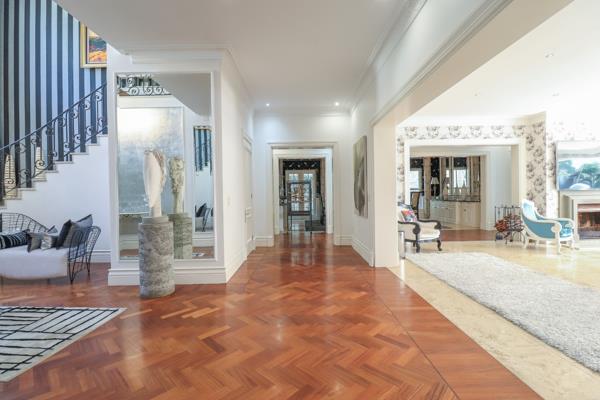 As you enter, be captivated by the grand double-volume foyer adorned with a dazzling crystal chandelier and striking artwork. This seamless flow leads to expansive living areas designed for entertaining and everyday living. The bright and airy TV room, expansive dining area, and bespoke state-of-the-art kitchencomplete with top-of-the-line built-in appliances and a spacious scullerycreate the perfect setting for both intimate gatherings and lavish celebrations.