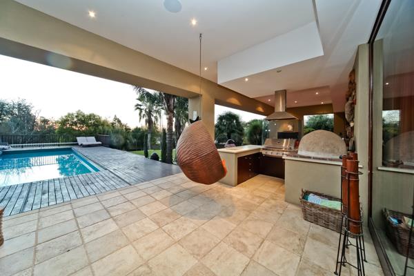 Large covered patio with coal and gas braais as well as a pizza oven, beautifully landscaped garden (irrigated by a Borehole) with pool and Jacuzzi also add to the luxury.