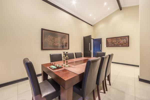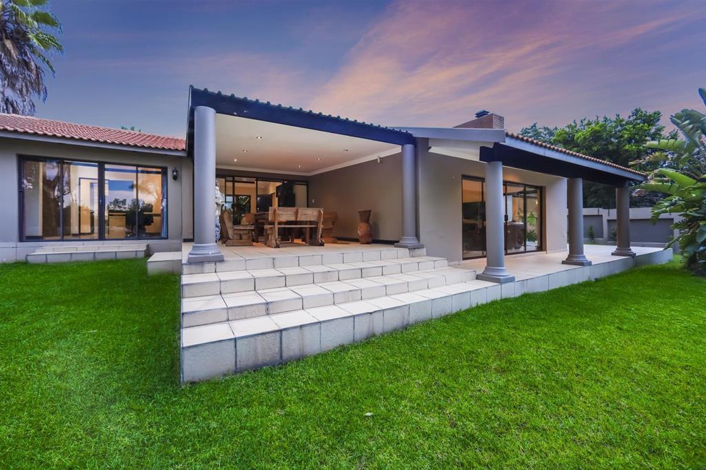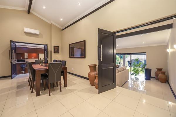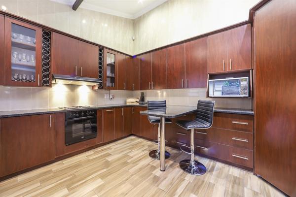 Modern high ceilings and top finishes will impress. A true entertainer''s paradise, with receptions opening outdoors, a covered patio, a refreshment bar, Lapa, a built-in braai overlooking a magnificent borehole garden with a water feature and a sparkling pool surrounded by natural rock.