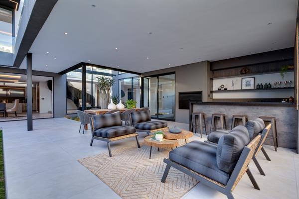 Walk from the light-filled entrance, past an atrium with indigenous plants, into the spacious open-plan kitchen, dining, and lounge with gas fireplace, all opening to the entertainer''s covered patio with builtin braai and bar, rim-flow pool and garden through aluminium sliding doors. Feature wine cellar with backlit shelves, visible through a large pane of glass. Past the lounge is the elegant guest suite with sliding doors to the garden.