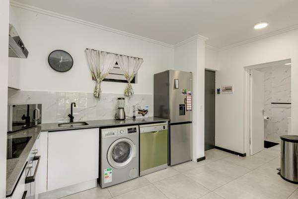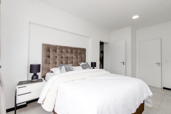 This modern home has 1 good size bedroom with a luxurious bathroom which is both en suite with another entrance for guest use, a swanky kitchen with clean lines and crisp, white cabinetry with quality eco-friendly appliances, a fully integrated inverter set up, just add yours, a heat pump geyser and pre-paid electricity meters.