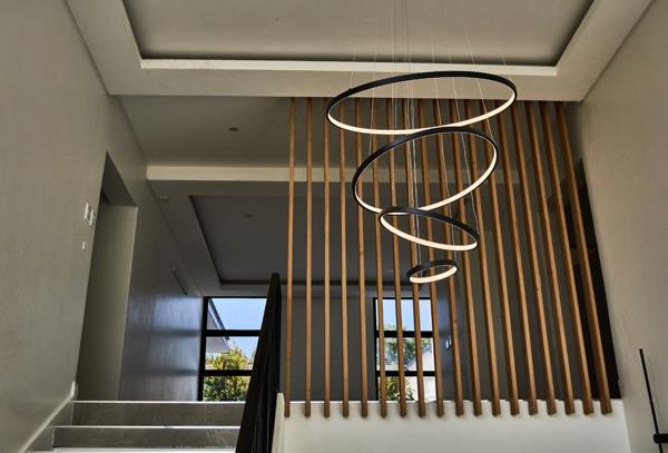 A double-volume entrance and feature staircase set the scene for the spacious, light-filled interior.