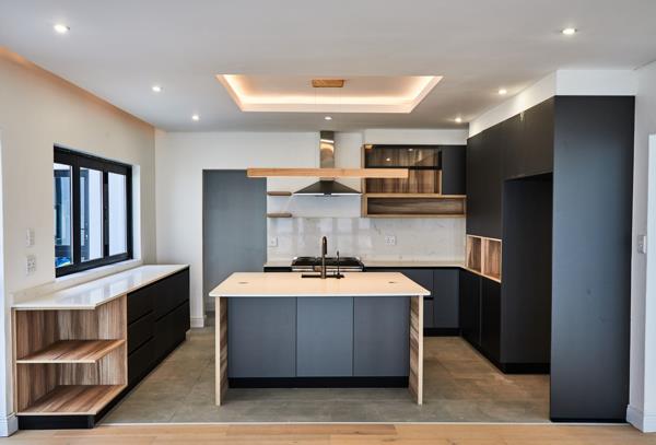The open-plan living and dining areas flow effortlessly to a covered entertainment patio with built-in braai, fire pit, and optional pool perfect for relaxed evenings or hosting friends.