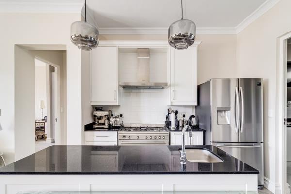 The open-plan kitchen is a chefs dream, featuring an induction hob, a walk-in scullery with space for three under-counter appliances, and ample storage space. The generous lounge area leads to a sizable balcony, perfect for enjoying sundowners while taking in the surroundings.
