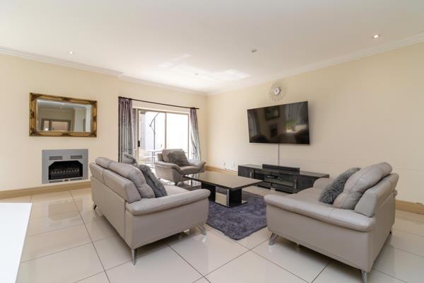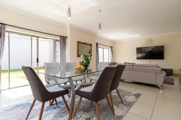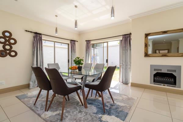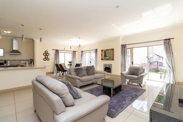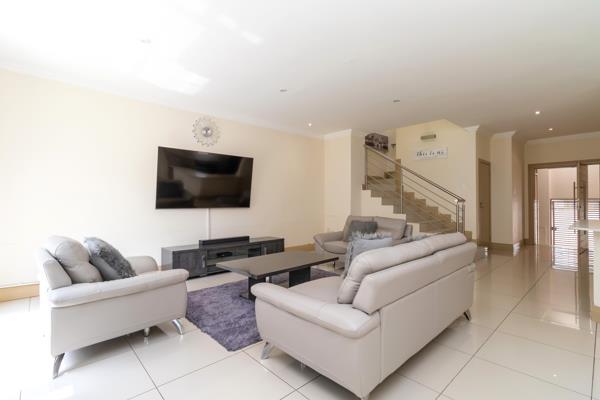located in a quiet corner of the complex this unit offers an open plan living area and modern kitchen complimented with a built in fire-place. Off of the living area is an outdoor patio with built in braai and large garden area. The upstairs features 3 spacious en suite bedrooms with high volume ceilings. The property also has a storeroom and a double garage.