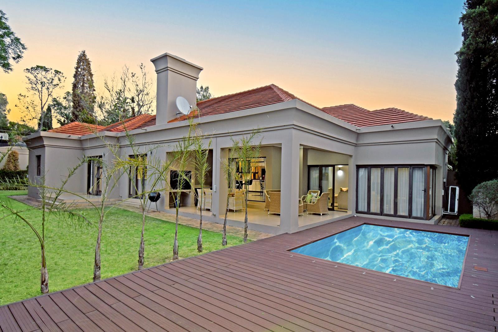 Expansive receptions that lead onto a decked pool and large garden welcoming entrance hall, formal lounge and an open plan dining room with a double sided gas fireplace and a family / TV room leading onto the patio with a built in braai.