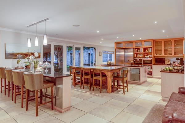 The modern eat-in kitchen seamlessly connects to a private courtyard featuring tranquil water features, a koi pond, and a central gazebo. Separate scullery. Walk-in fridge cold room & walk-in freezer cold room in garage adjacent to the house. A connoisseur''s delight, the temperature-controlled wine cellar accommodates 5,000 bottles, and spiral staircase down to the seating area.