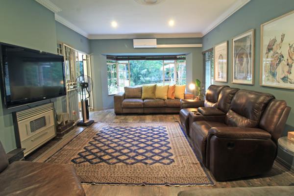 Formal zen motor court leading to a professional working environment and family home with entrance hall leading to four receptions opening to a patio overlooking a well-manicured garden and sparkling pool, main en-suite opening outdoors and two more north-facing bedrooms sharing a bathroom, double Hollywood garage and triple carport.