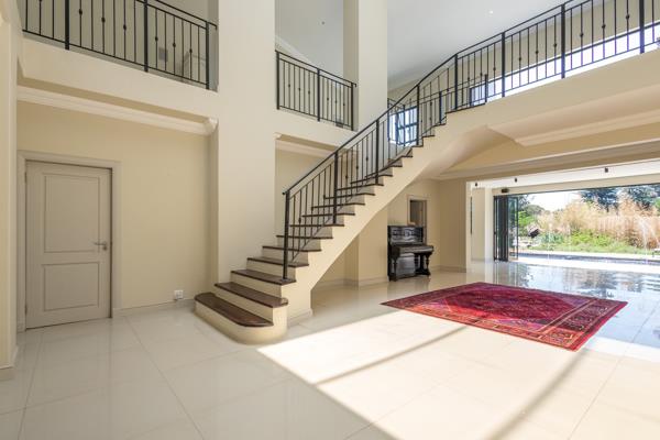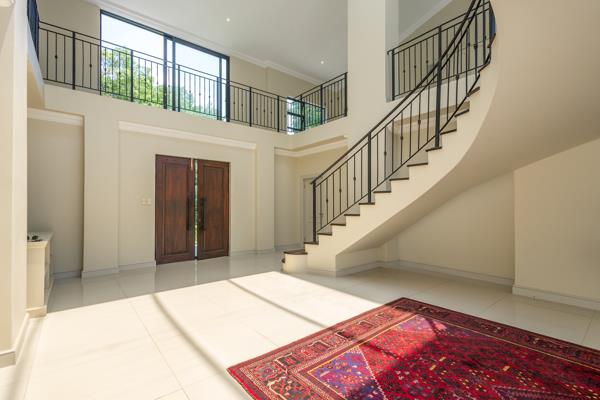 Modern Opulant four bedroom home in secure boomed road in Bryanston . This modern freestanding home offers an impressive double-volume entrance that exudes natural light and enhances the sense of space.