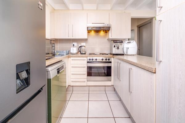 Upon entering, youre welcomed by a sleek, well-maintained kitchen featuring Caesarstone countertops with breakfast bar, ample cupboard space, and room for two appliances. The open-plan design seamlessly flows into the dining/lounge area, extending onto a cozy balconyperfect for unwinding.
